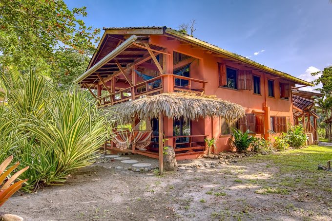 The oceanfront property of Casa Jessica & Changes In Latitude Seaside Suites sits directly in front of the Caribbean Sea. The property is nestled on a quiet beachfront road through the jungle just 3.5 kms from the center of Puerto Viejo where you can enjoy an eclectic mix of shopping, dining, and nightlife. Our large 4-bedroom beach house with 2 separate entrances is connected to the additional 3 rental suites above with a large covered breezeway. The house and rental suites can accommodate 17 people with 6 kitchens, 7 bedrooms and 7 bathrooms for the guests. There is an onsite manager available to assist with any needs throughout your trip. The beach house can be rented completely for large groups or separately for groups of 2 to 9 people. We have a large, tropical backyard garden with direct access to the river behind us and the secluded beach area out in front. Our eco-friendly property uses a rainwater collection system and our power supply is totally solar with a back-up generator for overcast days. Wi-Fi is provided by Starlink making it easy for those who work remotely to stay connected while enjoying the natural biodiversity that the Caribbean coast has to offer. Take in the clean fresh air of our beautiful beach haven while you enjoy wandering among the fruit-filled coconut trees on our wide stretch of shoreline. You’ll fall asleep to the sound of the ocean and awaken to a jungle symphony of chirping birds and howling monkeys. Wildlife surrounds you - iguanas, geckos, toucans, sloths, monkeys and the famous Blue Morpho butterfly. In the turtle season (summer and fall) huge leatherback turtles lay their eggs right on the beach in front of our property!